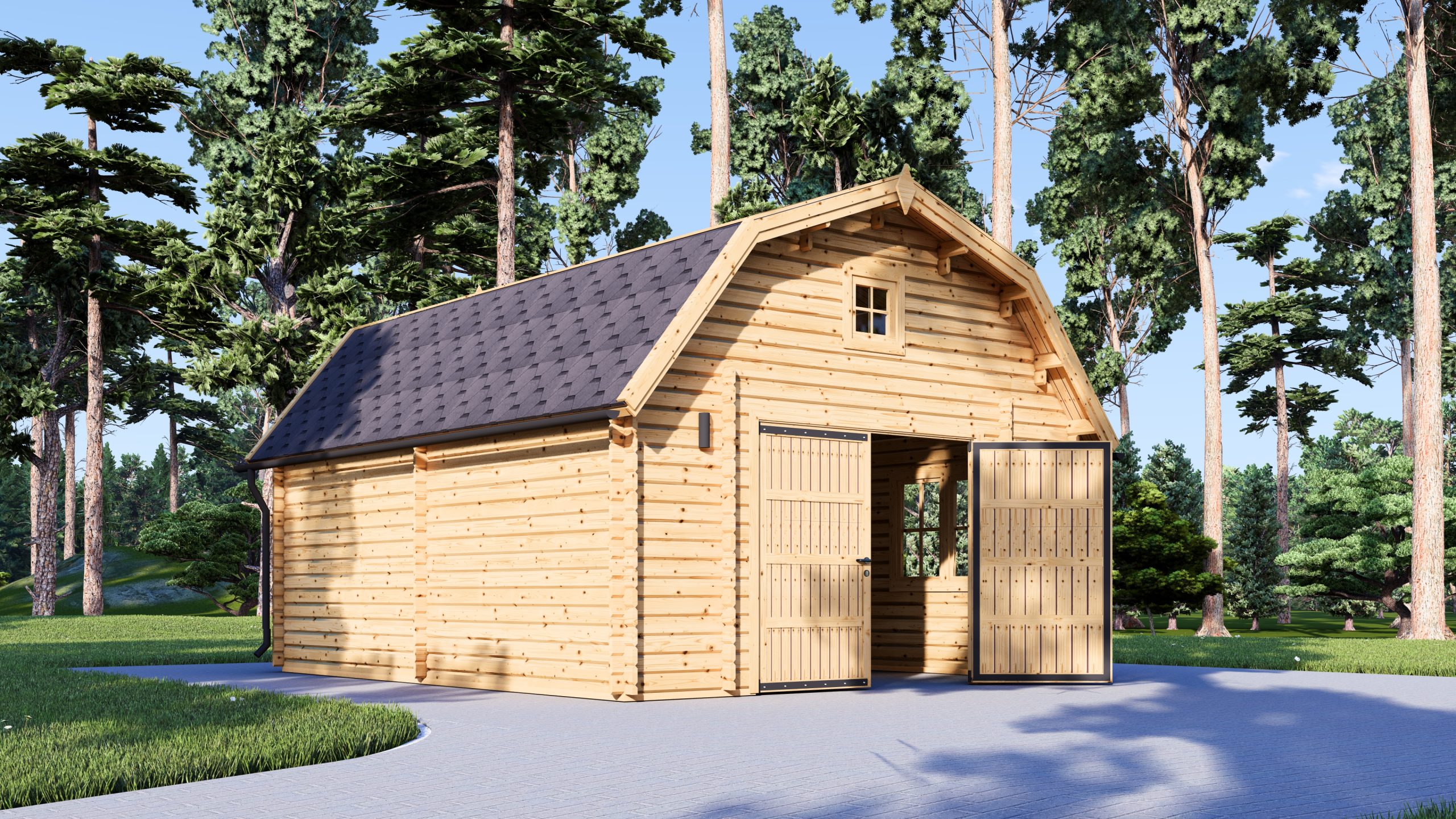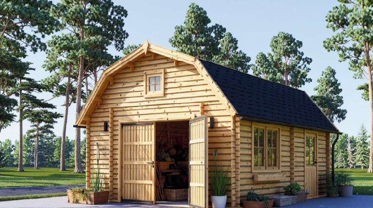 Este celeiro combina a robustez da madeira com um design rústico e acolhedor.