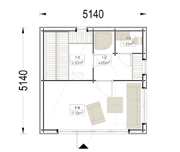 Tem um design moderno e cúbico. A fachada principal é amplamente envidraçada, com grandes portas de correr e janelas fixas que promovem a entrada de luz natural e a ligação com o exterior. Uma janela lateral mais pequena garante ventilação e iluminação adicionais.